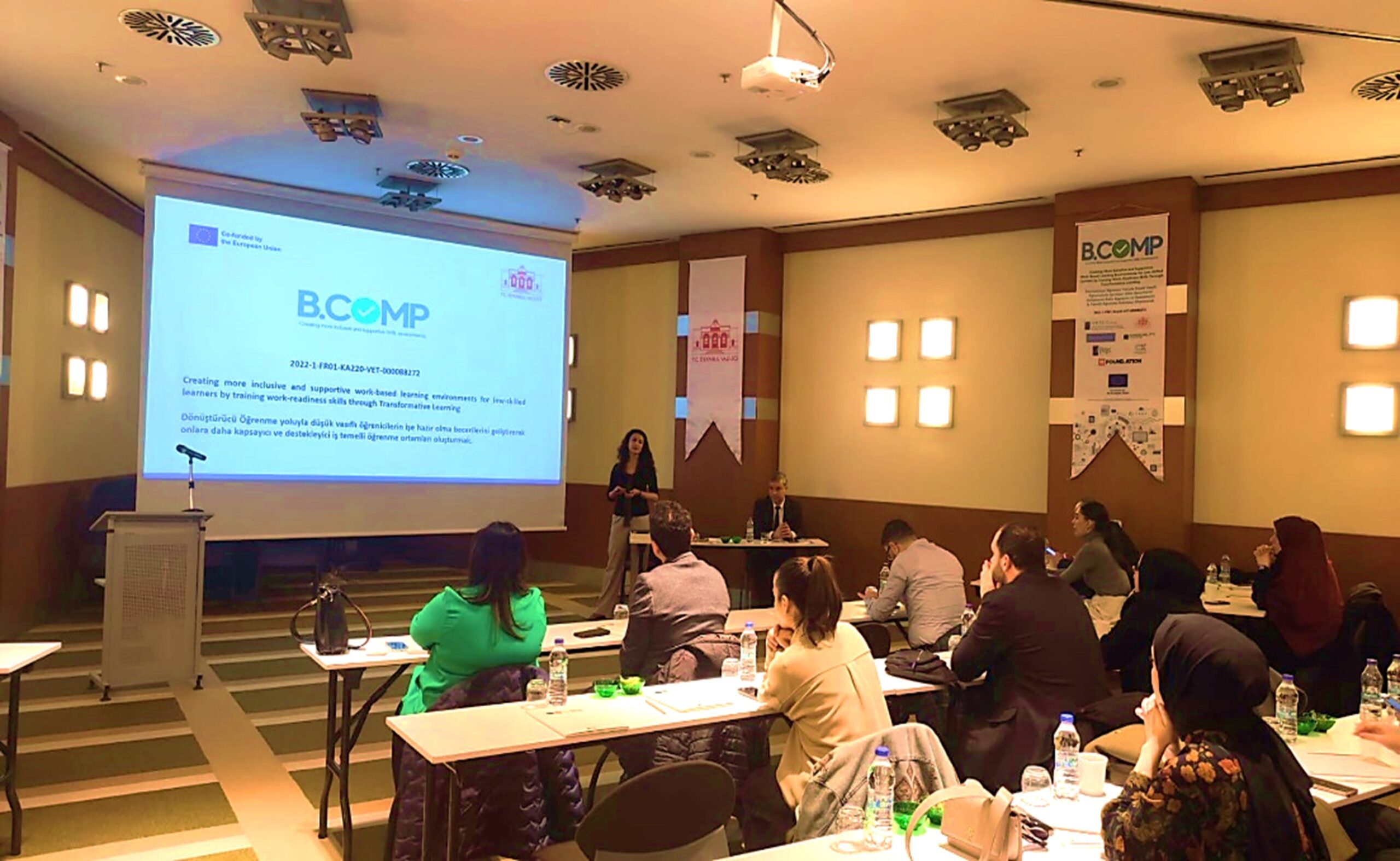 “B.COMP” Projesi dönüştürücü öğrenme ve iş temelli öğrenme yöntemleriyle düşük vasıflı öğrenicilerin işe hazır olma becerilerini geliştirerek onlar için daha kapsayıcı ve destekleyici iş temelli öğrenme ortamları oluşturmayı amaçlamaktadır.
