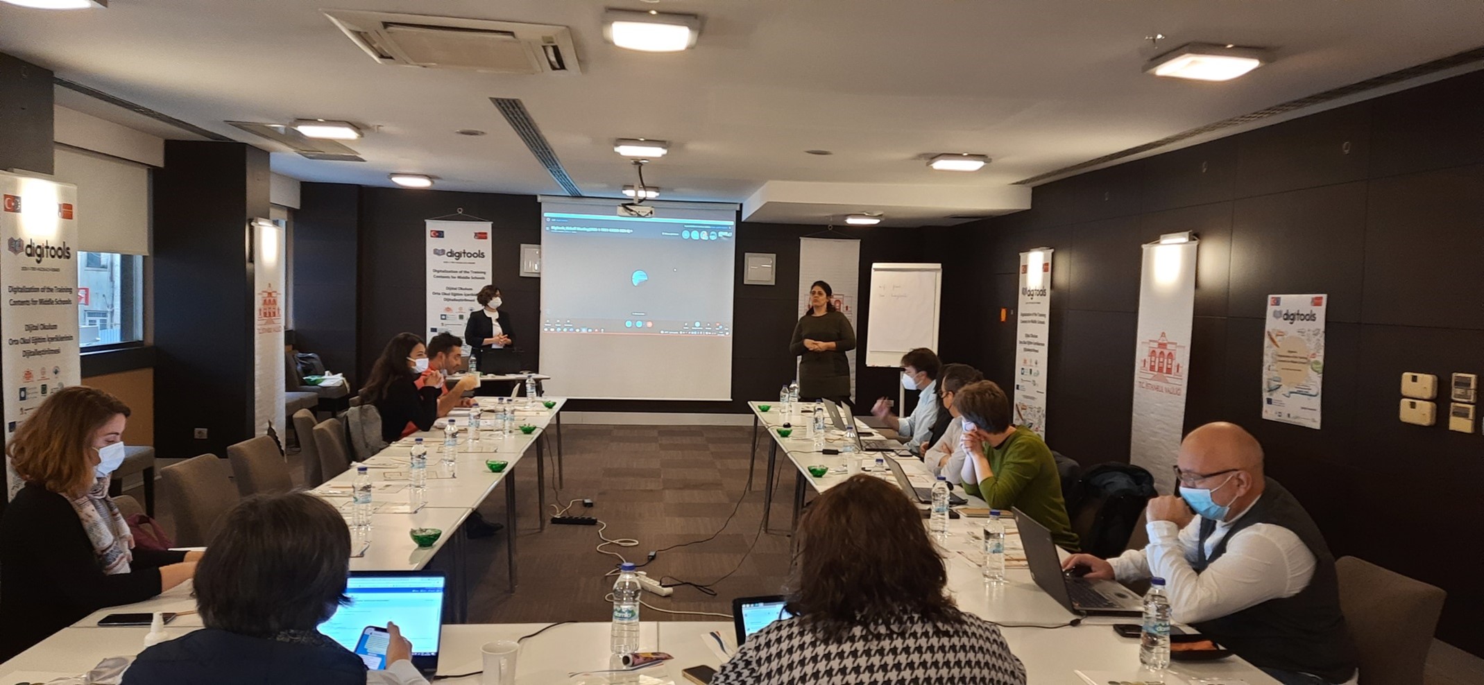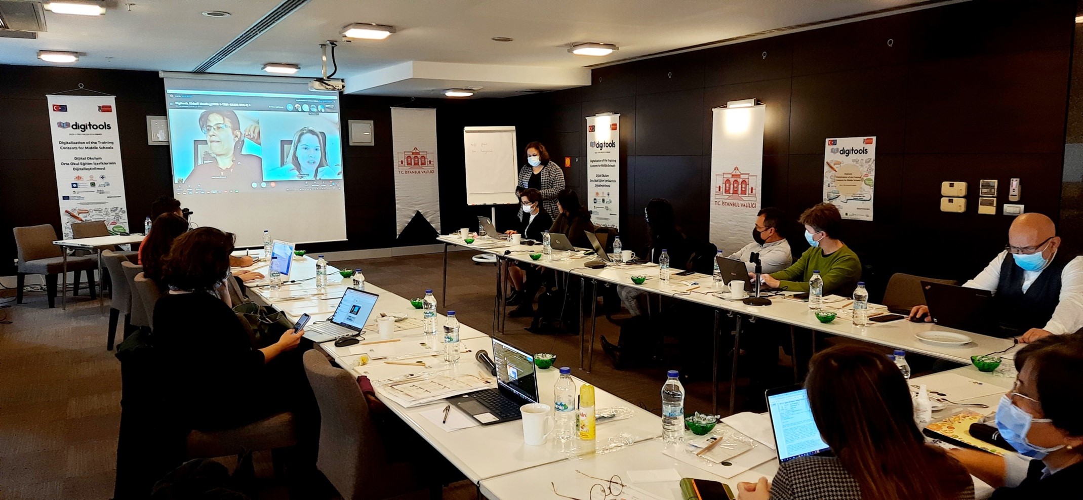 Toplantıda proje faaliyet ve çıktıları kısaca tanıtıldı. Dijital Sınıfım ürünü için gerçekleştirilen ortak ülkelerde Fen, Matematik ve İngilizce ders müfredatları incelemelerini sunuldu.