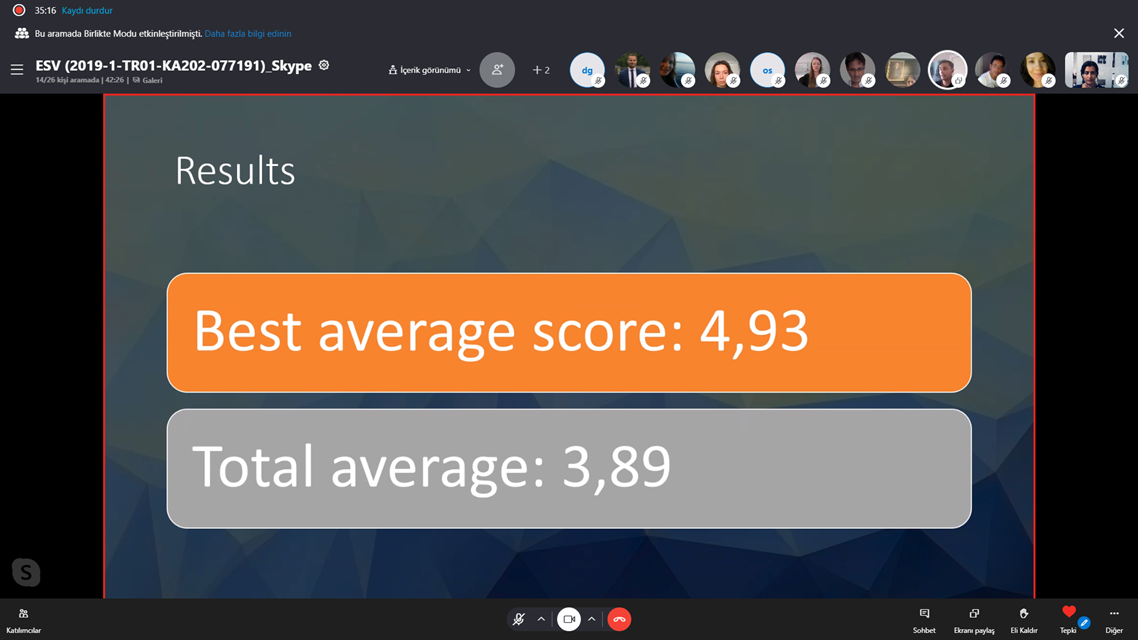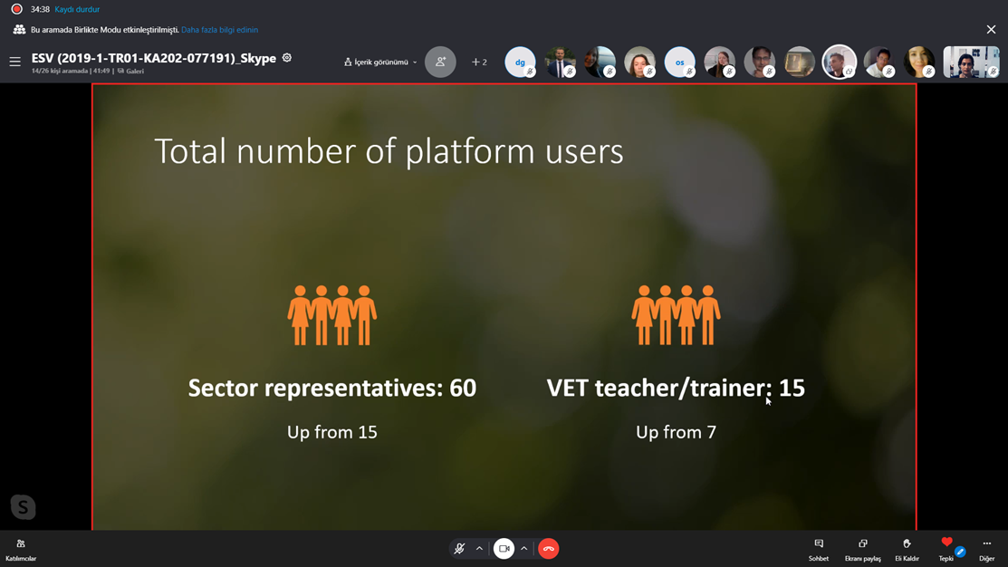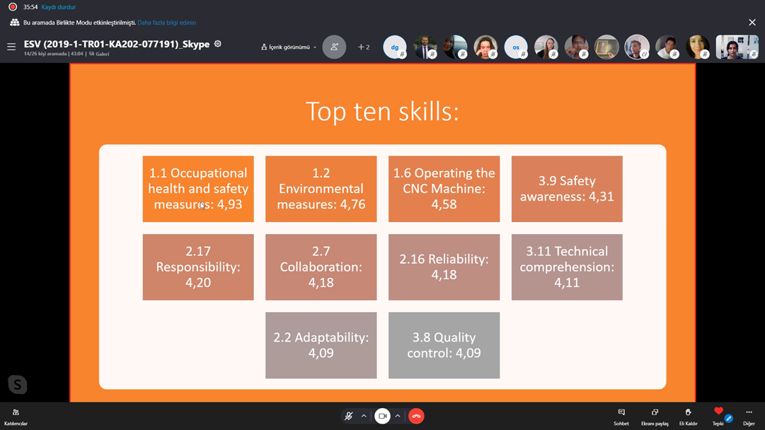 Proje ortak kurumlarının katılımıyla 17.08.2021 tarihinde gerçekleştirilen çevrim içi proje yönetim toplantısında Platform Tanıtım Günleri ve oylama süreci değerlendirildi. Sektör temsilcilerinin katılım sağladığı Beceri Değerlendirme Anketi’ne ait ilk sonuçlar paylaşıldı. Projenin beşinci ürünü olan eğitim içeriğinin tasarımına dair planlama yapıldı.