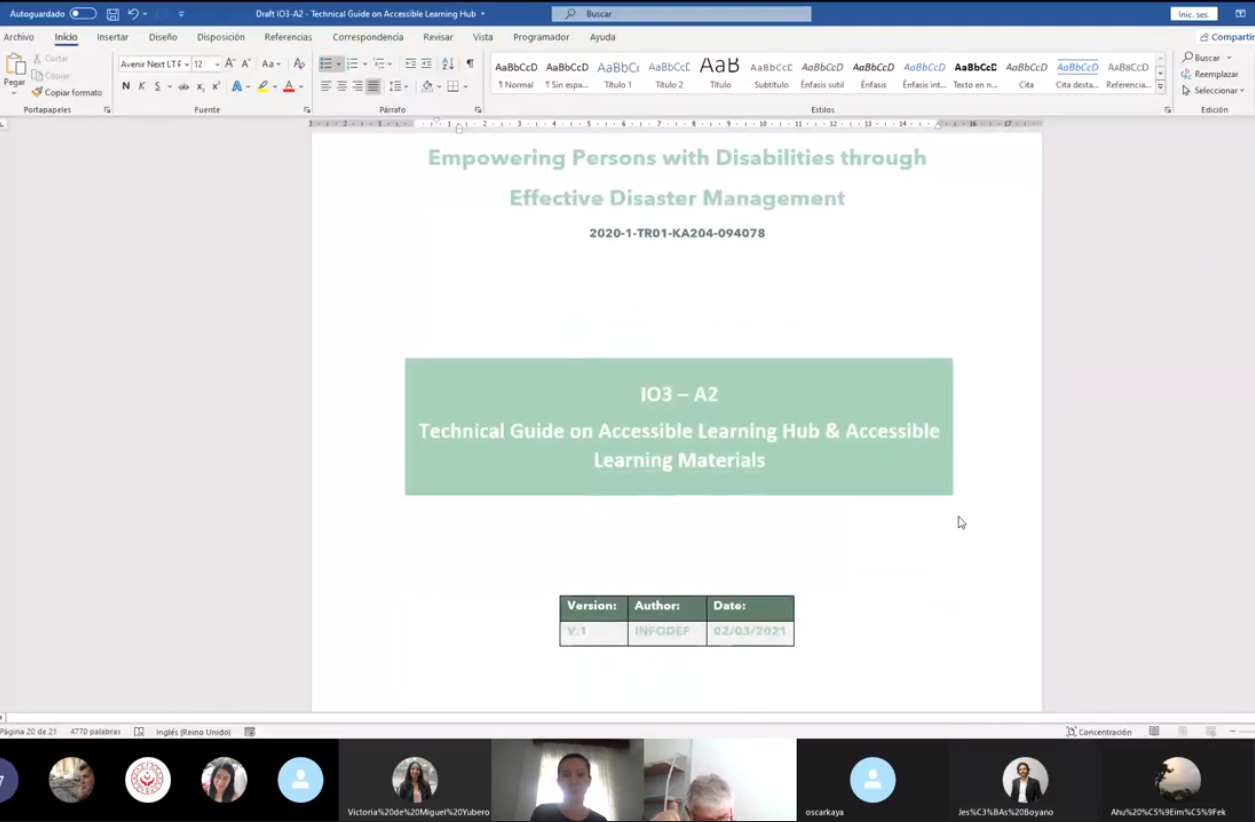 Çevrim İçi Ulus Ötesi Proje Başlangıç Toplantısı tüm ortak kurumların katılımı ile 2 Mart 2021 tarihinde gerçekleştirildi. Toplantıda proje faaliyetleri gözden geçirildi. Projenin ilk ürünü “Etkili Afet Yönetimi İçin Avrupa Referans Çerçevesi” çalışma planı ve faaliyetleri sunuldu.