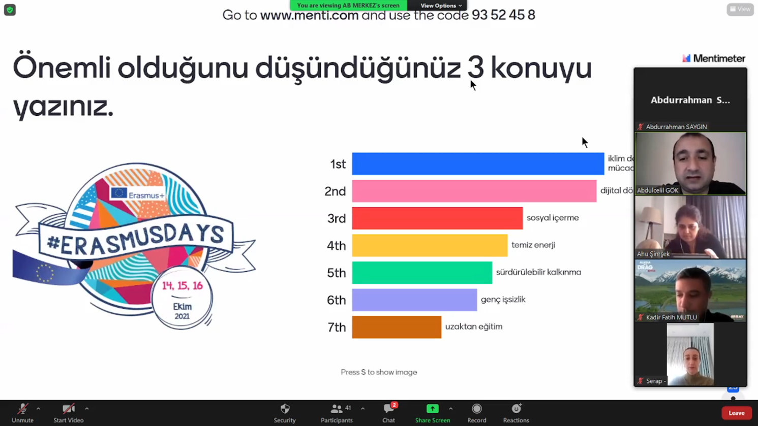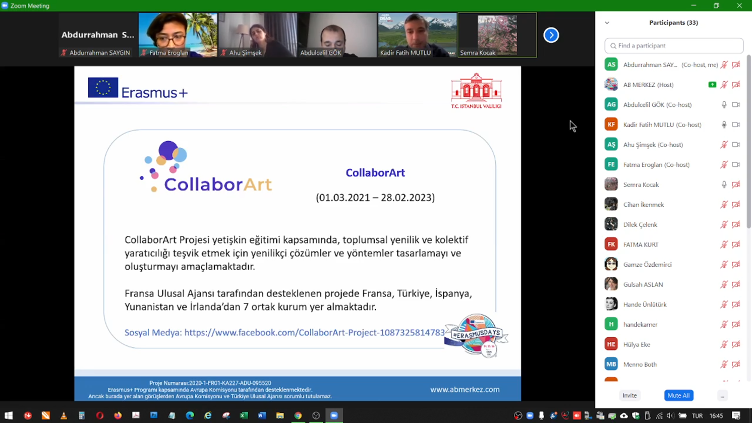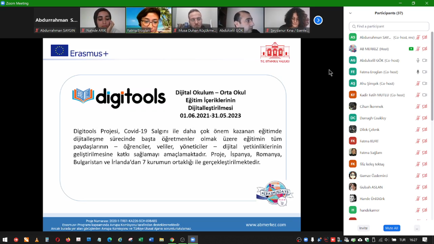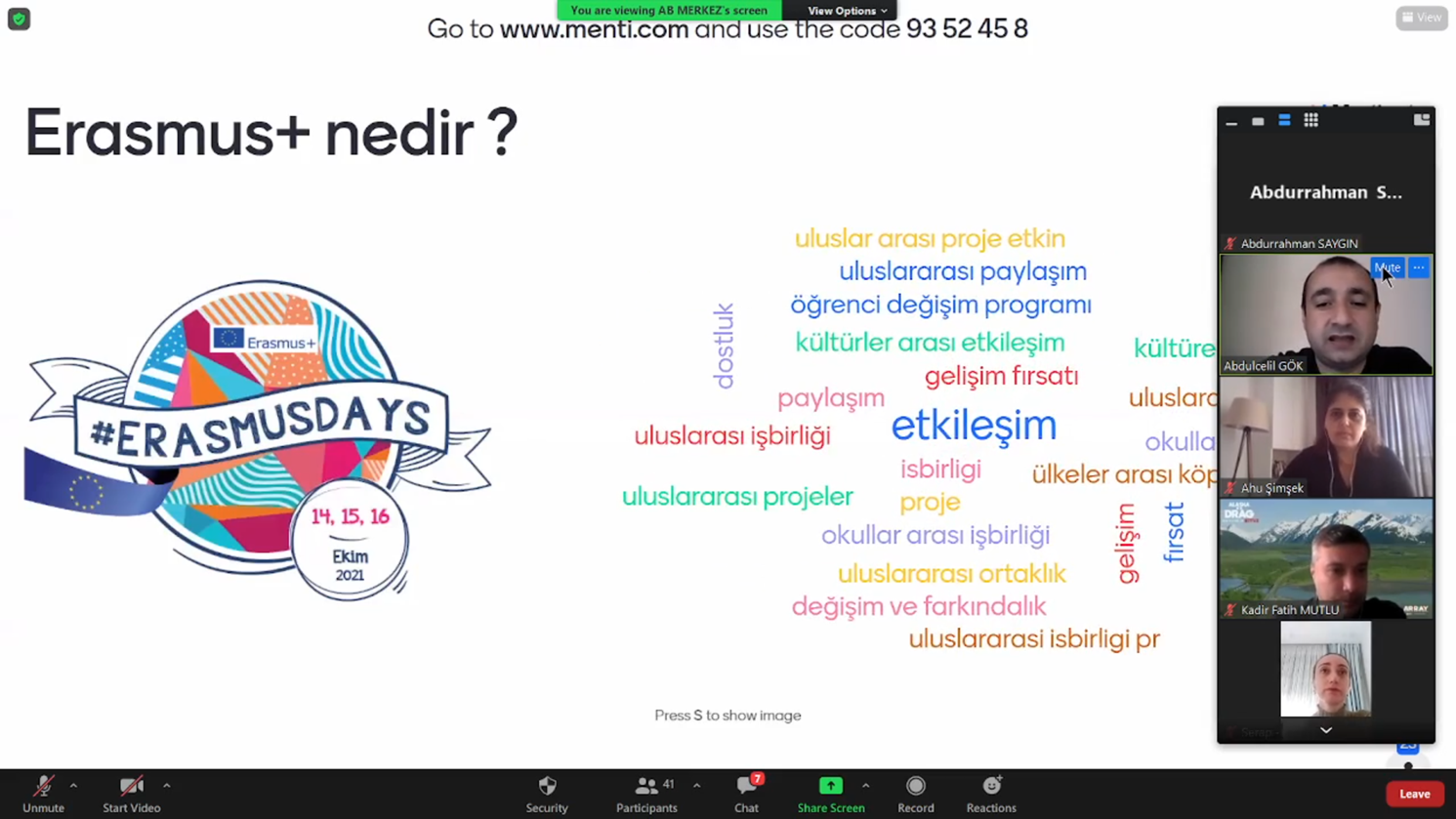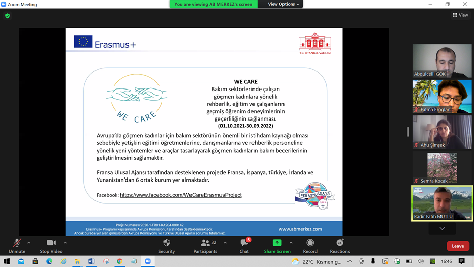 Erasmus Günleri etkinlikleri kapsamında İstanbul Valiliği Avrupa Birliği ve Dış İlişkiler Ofisi tarafından 16 Ekim 2021 Cumartesi günü 14:00-16:30 saatleri arasında yurt içi ve yurt dışından çeşitli kurumların katılımı ile çevrimiçi deneyim paylaşımı etkinliği düzenlendi.