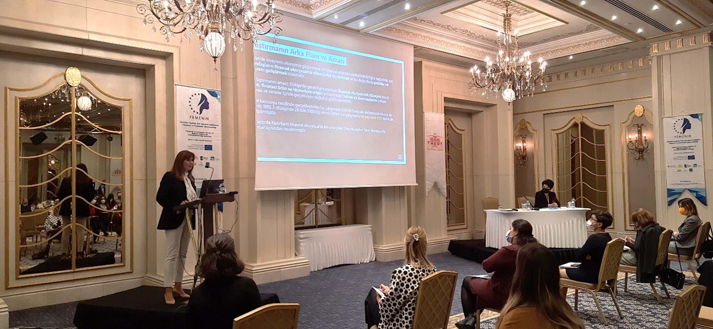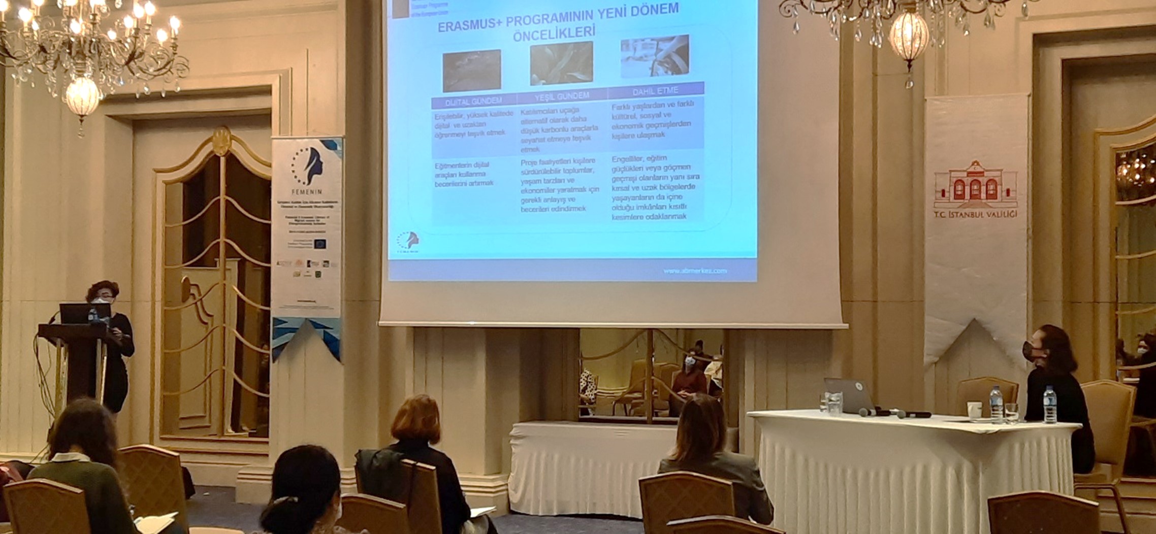 FEMENIN Projesi’nin temel hedefi, göçmen kadınların finansal ve ekonomik okuryazarlıklarını geliştirmek için ihtiyaca uygun şekilde tasarlanmış kaliteli öğrenme fırsatları sağlayabilmeleri amacıyla yetişkin öğretmen ve eğitimcilerini desteklemektir. FEMENIN Eğitim Müfredatı, FEMENIN Mobil Öğrenme Uygulaması ile Çok Dilli Elektronik Öğrenme Platformu ve Eğitim İçeriklerinin tanıtılması ve yaygınlaştırılması amacıyla FEMENIN Çoğaltıcı Konferansı Halk Eğitim Merkezi ve Olgunlaşma Enstitüsünde görev yapan yetişkin eğitimcileri ile göçmen ve finansal okuryazarlık alanında çalışan kurumlardan temsilcilerin katılımı ile İstanbul Valiliği’nin ev sahipliğinde 19 Ekim 2021 tarihinde İstanbul’da gerçekleştirildi. Konferansta misafir konuşmacılar tarafından Türkiye’de Yetişkin Eğitimi, Finansal Okuryazarlık ve Kadın Girişimciliği üzerine sunumlar yapıldı. Proje kapsamında geliştirilen Çok Dilli E-Öğrenme Platformu ve Mobil Öğrenme Uygulamasının kullanımına dair gönüllü katılımcılar ile uygulama ve platformu deneyimlemeleri amacıyla bir çalıştay gerçekleştirildi ve bu ürünler üzerine fikir alışverişi yapıldı.