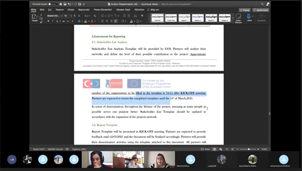 Go Zero Projesi’nin açılış toplantısı tüm ortak kurumların katılımı ile 24 Mart 2021 tarihinde çevrim içi olarak gerçekleştirildi. Toplantıda proje faaliyetleri gözden geçirildi. Projenin ilk ürünü olan “Atık Yönetimi Müfredat Çerçevesi” ve “Karşılaştırmalı Rapor”  için çalışma planı sunuldu ve lider ortak tarafından yönlendirme ve bilgilendirme yapıldı.    Projenin bir sonraki aşamasında ortak ülkelerdeki atık yönetimi uygulamaları hakkında araştırma yapılıp sektörden işveren ve çalışanlarla odak grup toplantıları gerçekleştirilecektir.