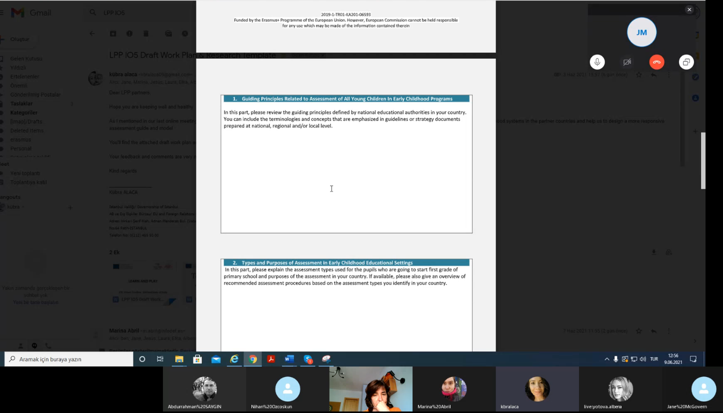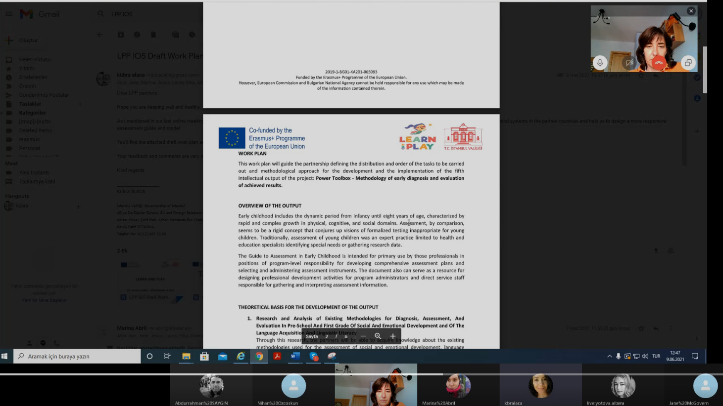 Proje ortak kurumlarının katılımıyla 04.06.2021 tarihinde gerçekleşen çevrim içi proje yönetim toplantısında geliştirilen platformun ilkokul öğretmenleri ile planlanan test aktivitesine dair fikir alışverişi yapıldı. Projenin son ürünü olan “Değerlendirme Metodolojisi” çalışma planı sunuldu.