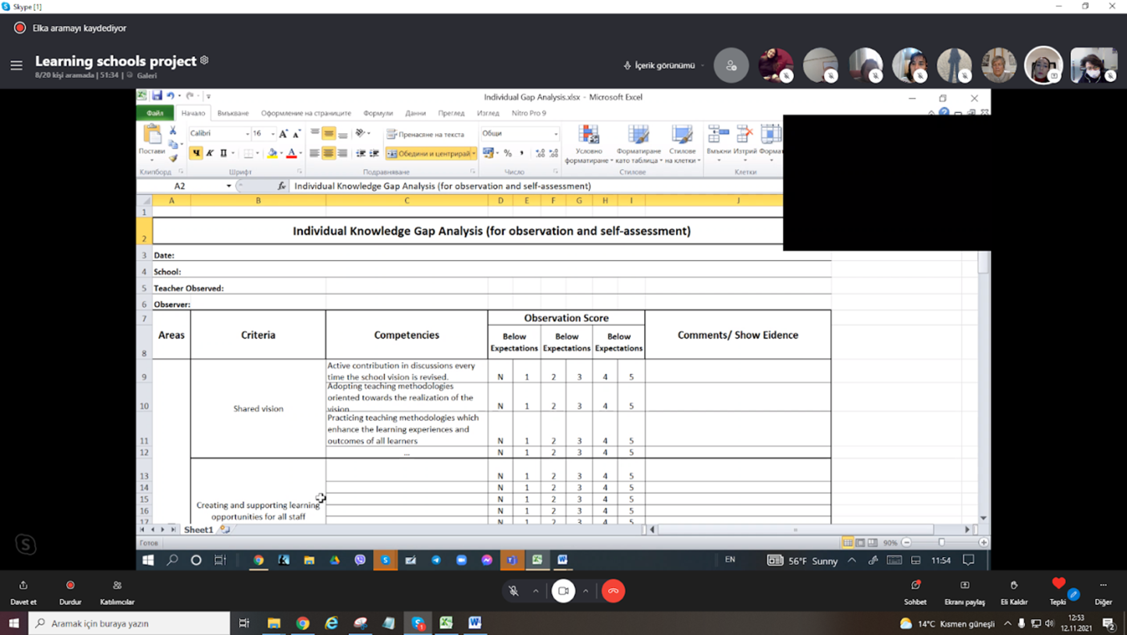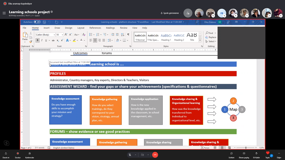 Proje ortak kurumlarının katılımıyla 11 Kasım 2021 tarihinde gerçekleştirilen uluslararası çevrim içi proje yönetim toplantısında proje faaliyetleri değerlendirildi. Öğrenen Okullar Modeli taslağı gözden geçirildi. Ortaklar model için geri bildirimlerini paylaştı.