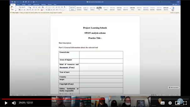 Proje ortak kurumlarının katılımıyla 10 Aralık 2020 tarihinde uluslararası çevrim içi proje yönetim toplantısı gerçekleştirildi. Toplantıda öğrenen okullar modeli ihtiyaç analizi yol haritası belirlendi.