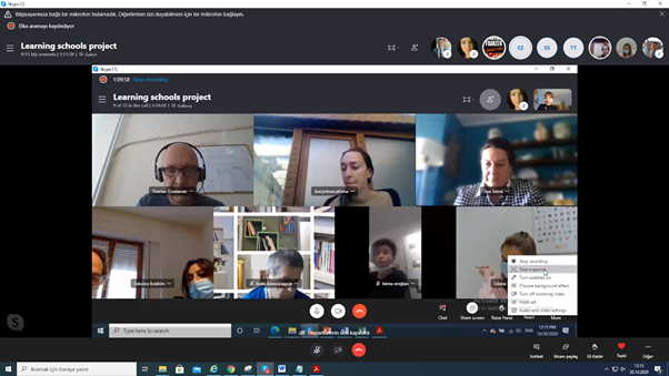 Learning Schools projesinin ilk çevrim içi toplantısı 30 Ekim 2020 tarihinde tüm ortak kurumların katılımıyla gerçekleştirildi Ortak kurumların proje ekiplerinin birbiriyle tanıştığı toplantıda proje faaliyetleri gözden geçirildi.