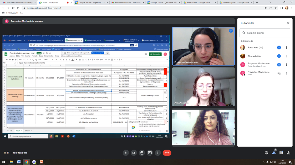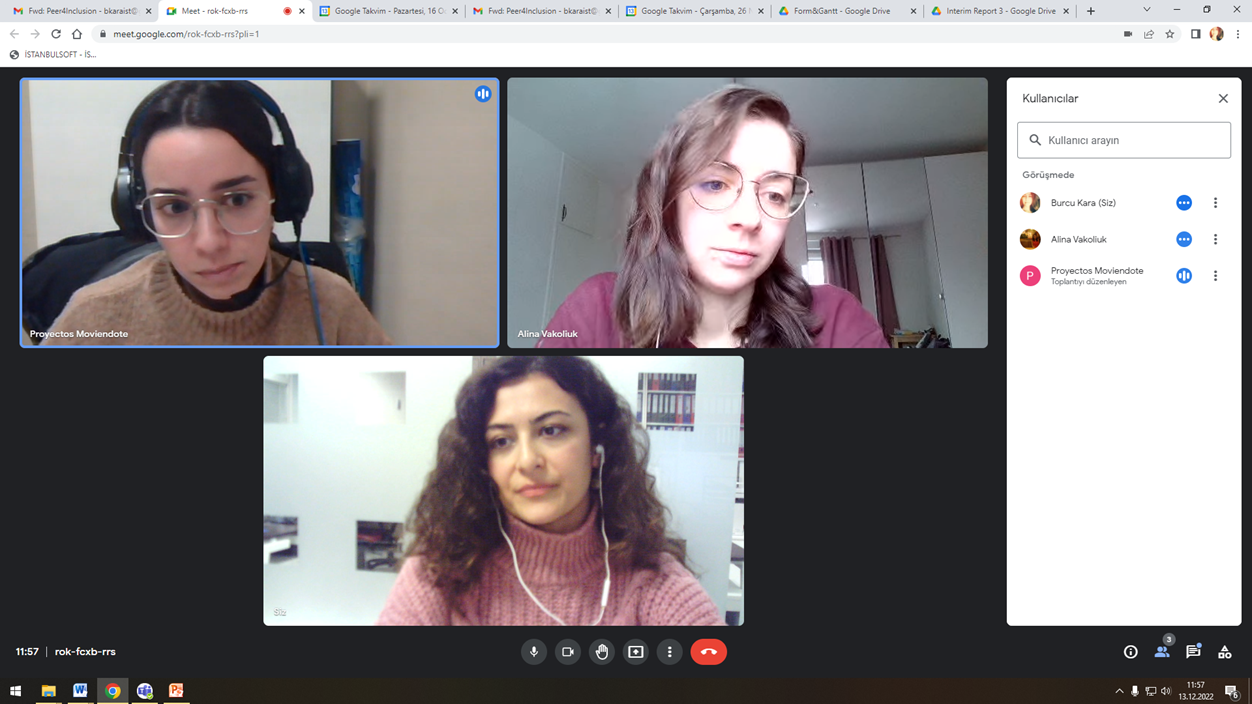 Peer4Inclusion Projesi Açılış Toplantısı 13 Aralık 2022 günü çevrim içi olarak gerçekleştirildi. Toplantıda proje ortakları kurum tanıtımlarını sunduktan sonra çalışma sürecine yönelik planlamalar kararlaştırıldı.