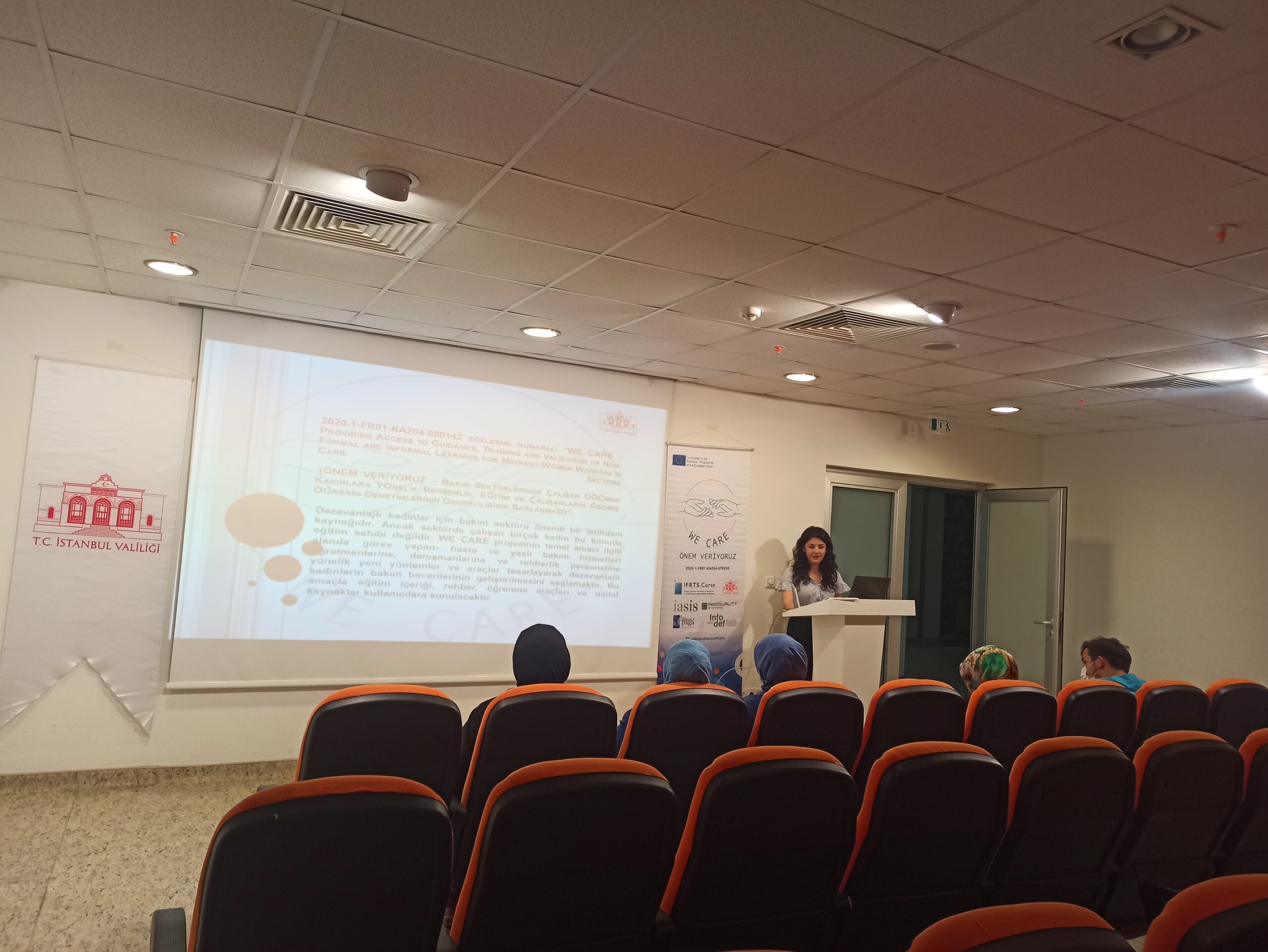 2020-1-FR01-KA204-080142 sözleşme numaralı “WE CARE – Providing Access to Guidance, Training and Validation of Non-Formal and Informal Learning for Migrant Women Working in Care Sectors (ÖNEM VERİYORUZ – Bakım Sektörlerinde Çalışan Göçmen Kadınlara Yönelik Rehberlik, Eğitim ve Çalışanların Geçmiş Öğrenim Deneyimlerinin Geçerliliğinin Sağlanması)” Projesi, Erasmus+ Programı Yetişkin Eğitimi Alanında Stratejik Ortaklıklar kapsamında Fransa Ulusal Ajansı vasıtasıyla Avrupa Komisyonu tarafından desteklenmektedir. “WE CARE” Projesi’nin temel hedefleri arasında yetişkinler ile çalışan eğitimci, öğretmen, danışman ve rehberlik personelinin kullanımına yönelik bakım alanında yeni eğitsel yöntemler ve araçlar tasarlayarak göçmen kadınların bakım becerilerinin geliştirilmesine katkı sağlanması yer almaktadır. İstanbul Valiliği’nin ortak olarak yer aldığı proje Avrupa Birliği ve Dış İlişkiler Bürosu tarafından gerçekleştirilmektedir.